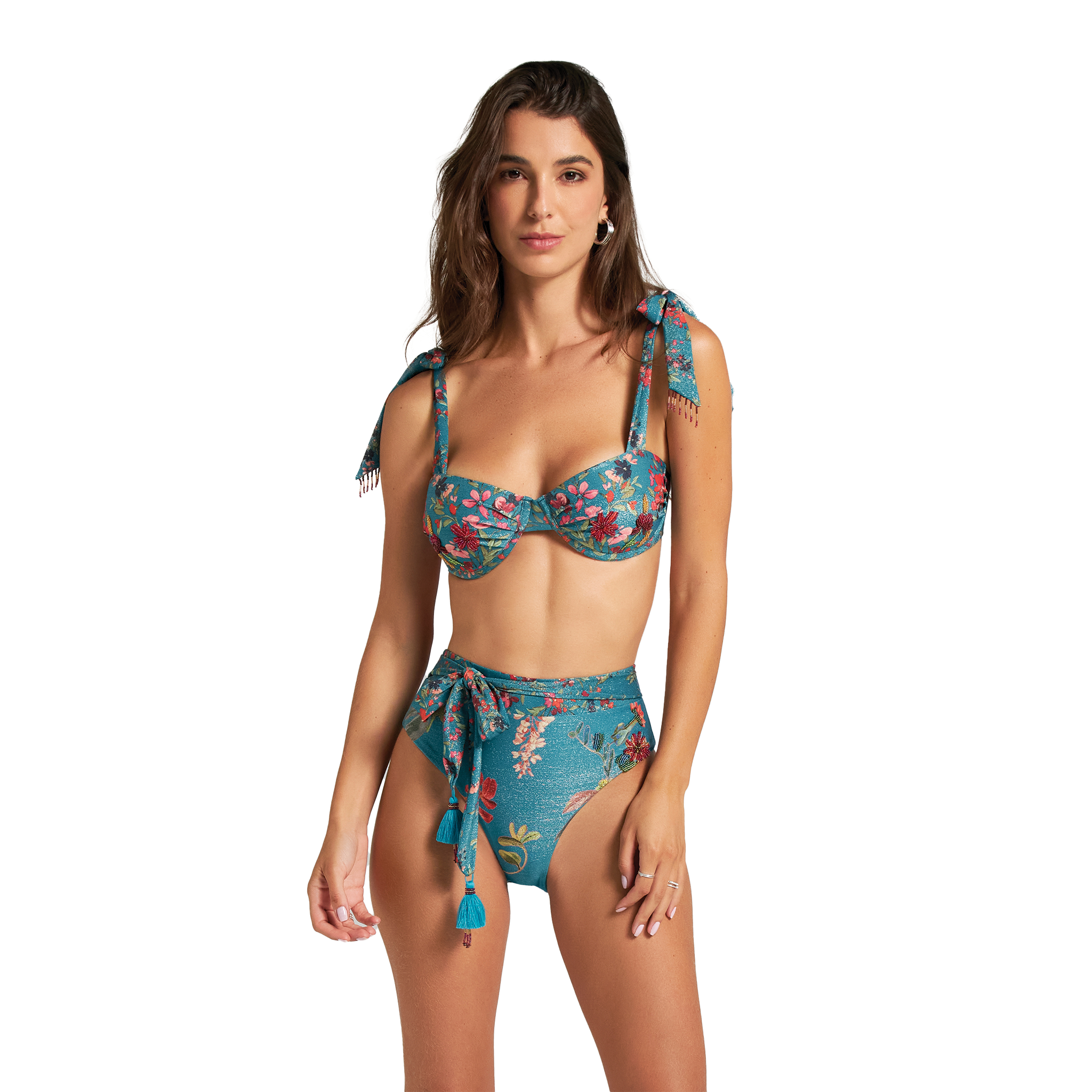 Con un elegante diseño de sujetador con aros y un vibrante estampado floral, este top combina sujeción y estilo. Dale un toque de sofisticación a tu armario con esta exclusiva pieza.